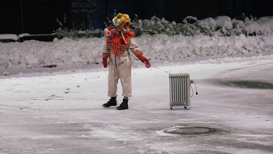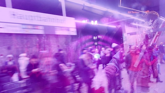 Quoi Que Tu Dis embarks on a search for a queer language of intimacy, its disappearance, and resurgence on both textual and visual levels. The story is located in Munich's subway system. Slack of space and expensive housing lead the protagonists to create their own havens amidst the cramped conditions. An abandoned subway kiosk is transformed into a vibrant space and organism. In semi-frozen times, the protagonists navigate between the underground and the surface, with nature as their companion. Proximity provides warmth. Proximity does not burn. "Whatever you say."