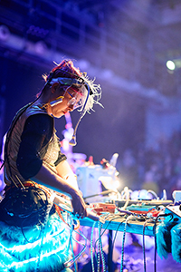 Dressed In Sound is a textile-machine ensemble initiated by Stephanie Müller (Rag*Treasure) together with Klaus Erika Dietl. What began as an experiment with sewing machines, knitting machines, and spinning wheels soon grew into a collective dedicated to exploring the intersection of textile practice and sound art.